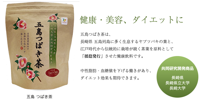 五島の恵みで育ったの椿と茶葉を島内で加工生産することにこだわった地域特産物です。